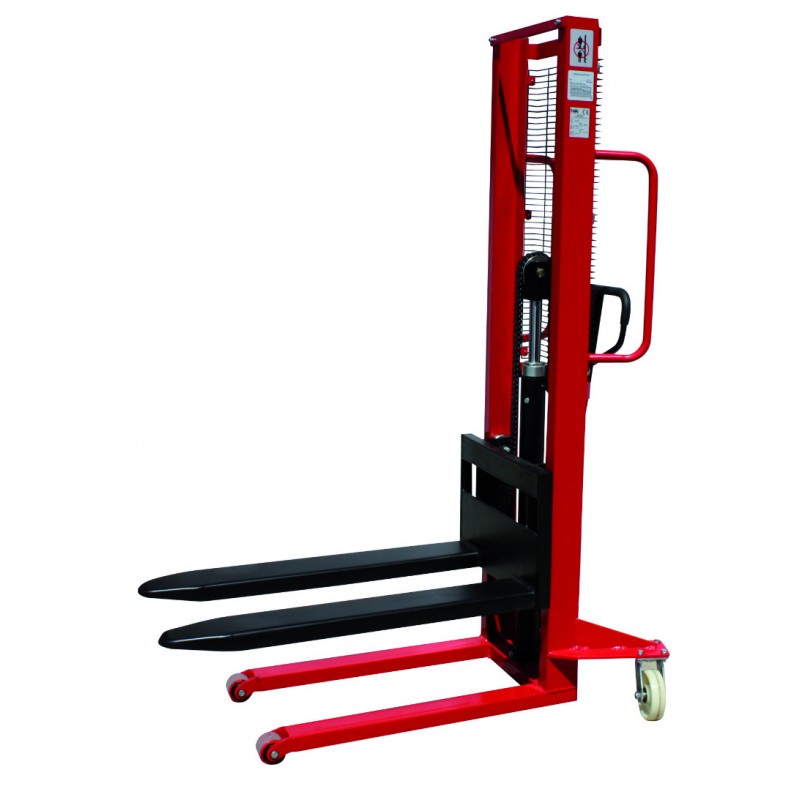 Apilador manual con capacidad de carga de 500 kg. a una altura máxima de 1600 mm.