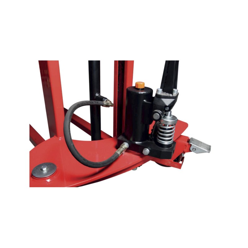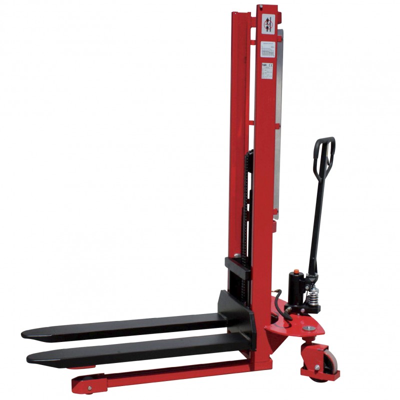 Apilador manual con capacidad de carga de 1.000 kg. hasta una altura de 1600 mm.